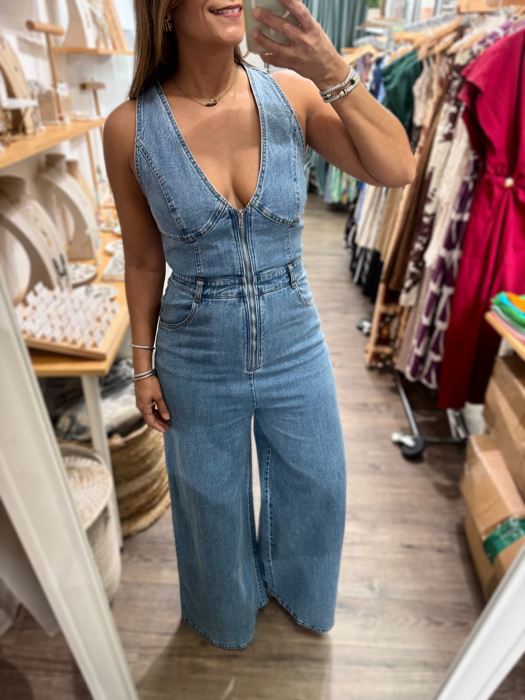 Denim Front Zipper Jumpsuit