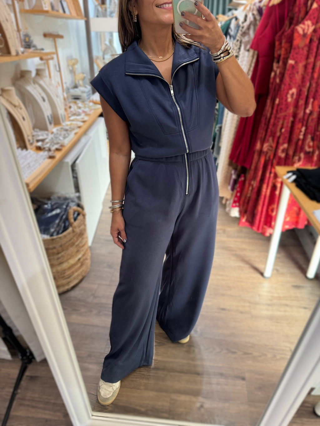Navy Front Zipper Jumpsuit