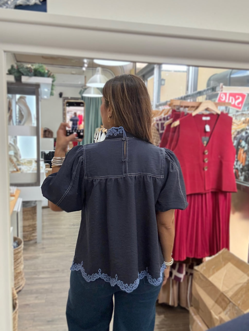 Navy Contrast Stitch Top