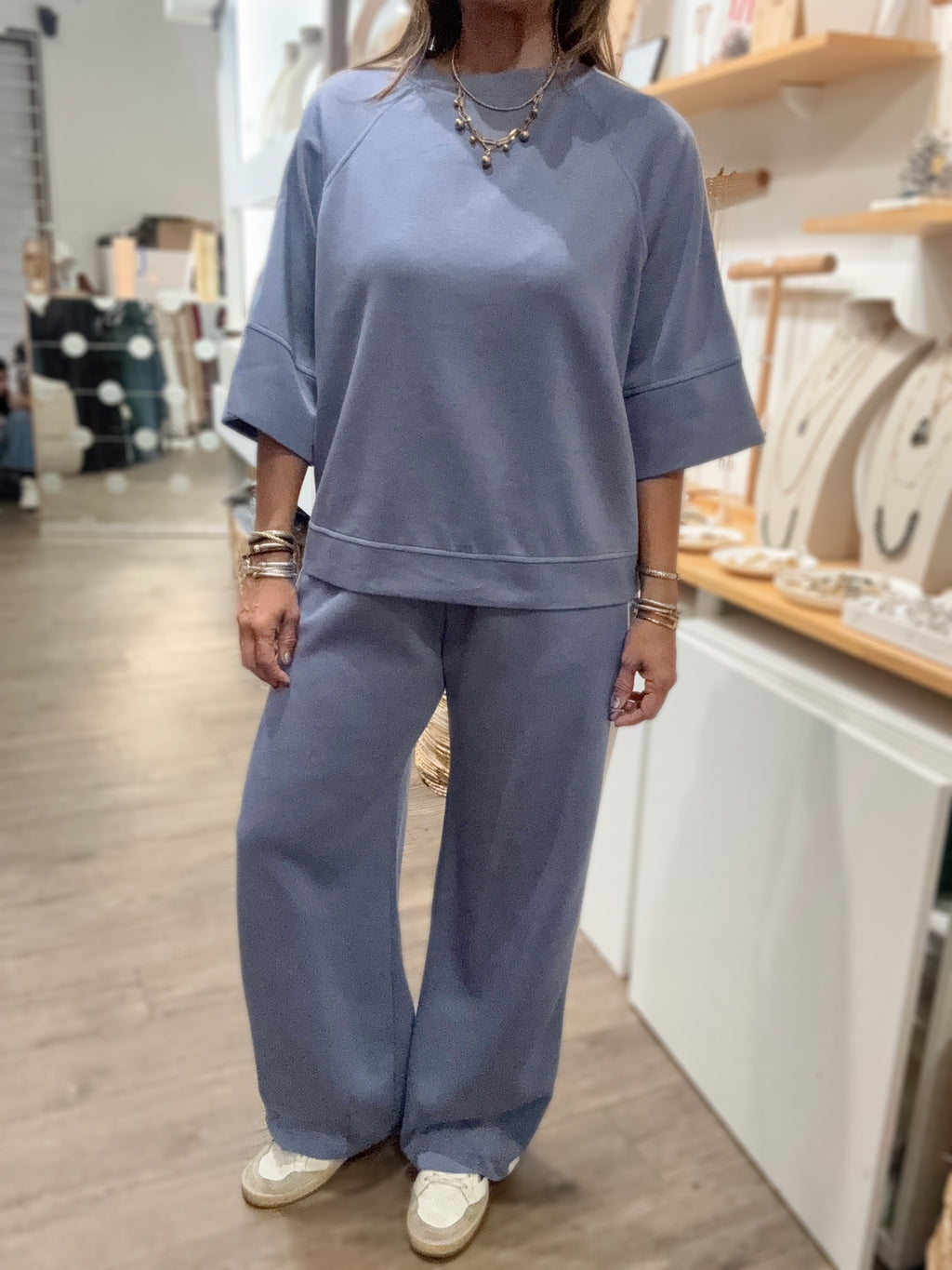 Blue Side Stripe Top & Pant Set