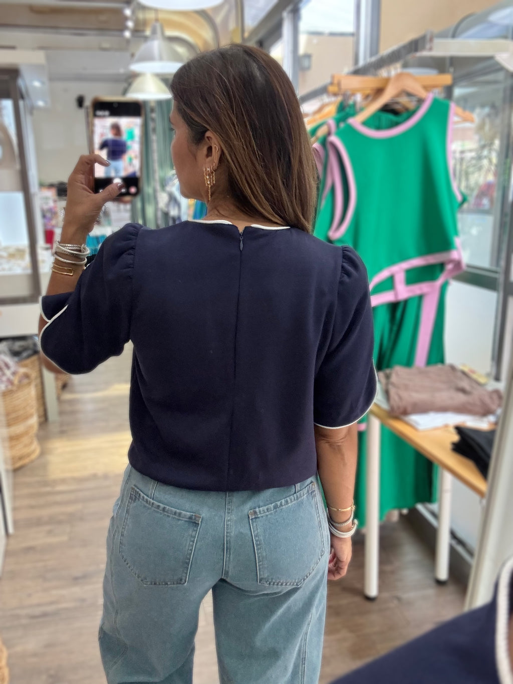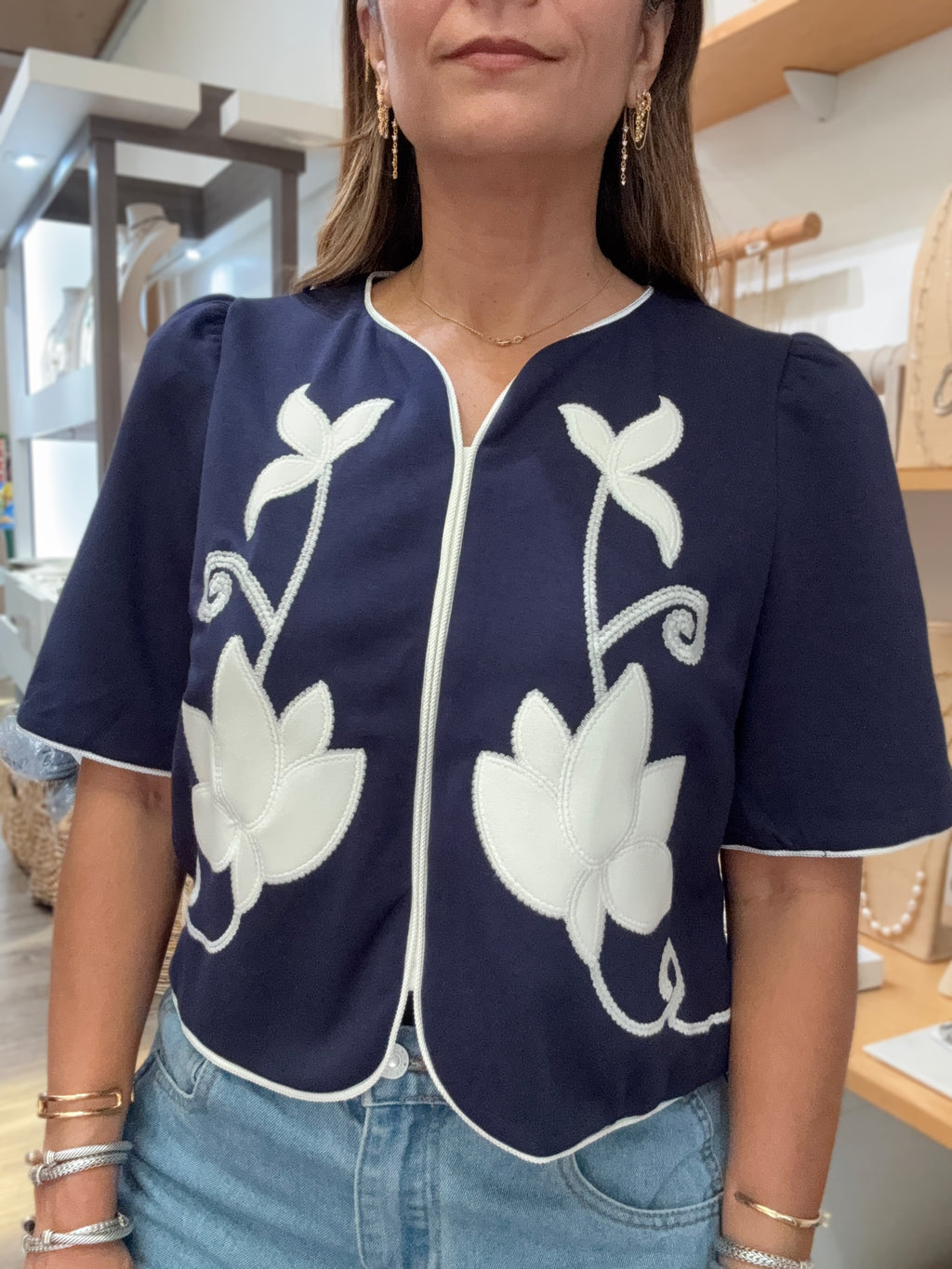 Navy Floral Applique Top