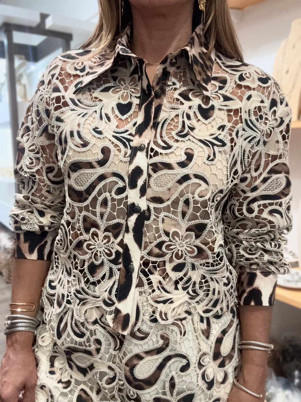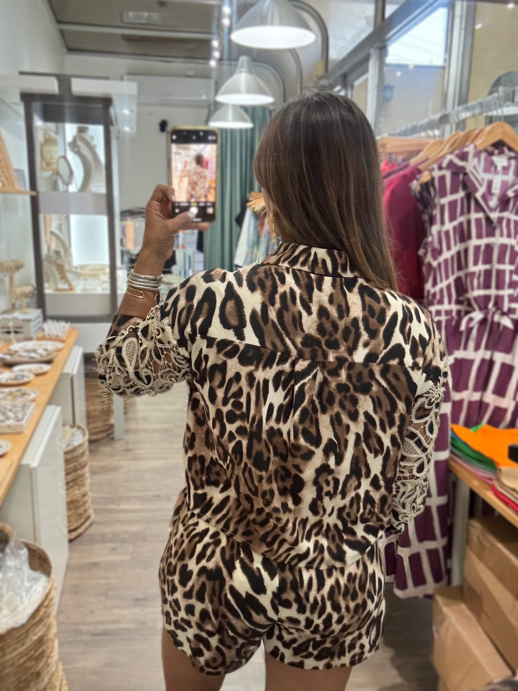 Leopard Print & Lace Top & Shorts Set