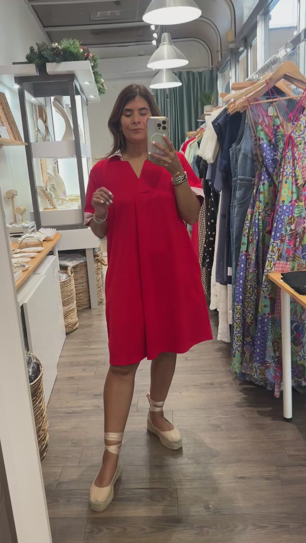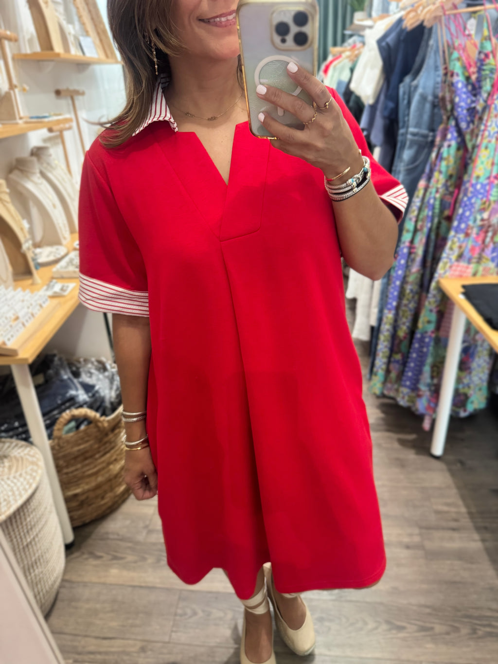 Red Stripes Detail Dress