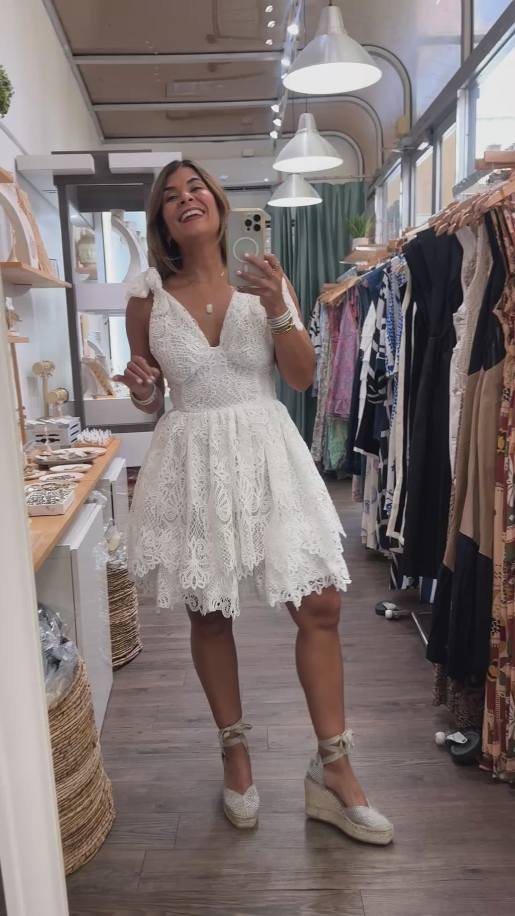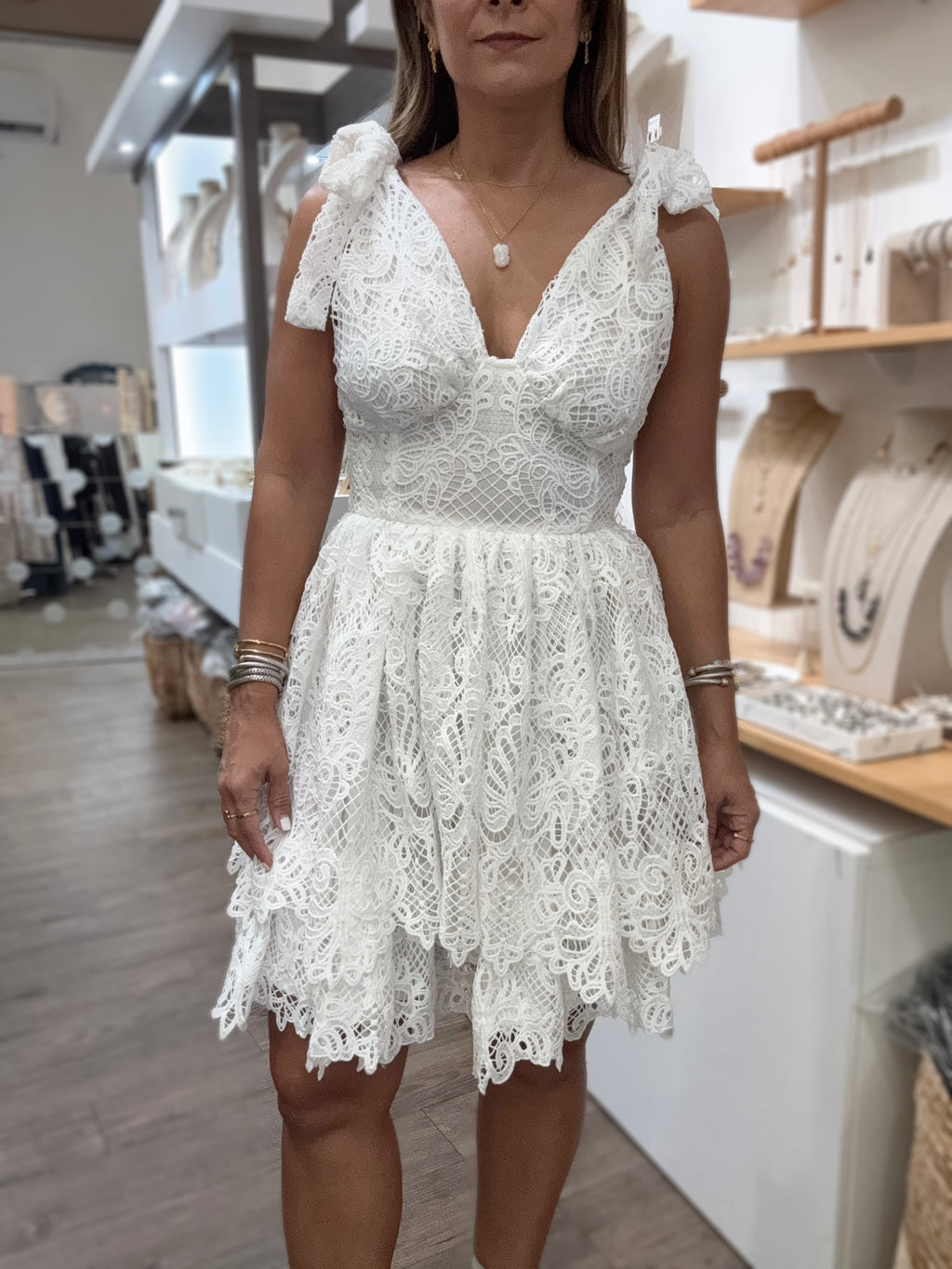 White Lace Shoulder Ties Dress