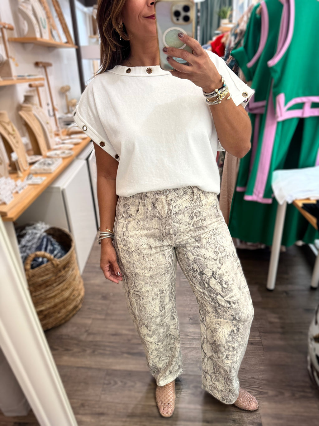 Snake Print Barrel Jeans