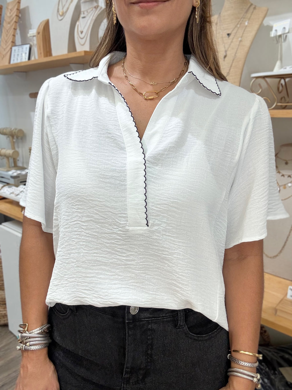 White Trim Detail Top