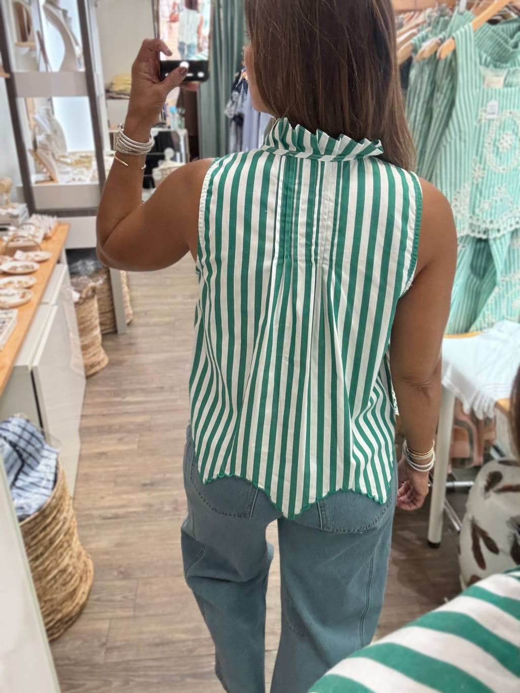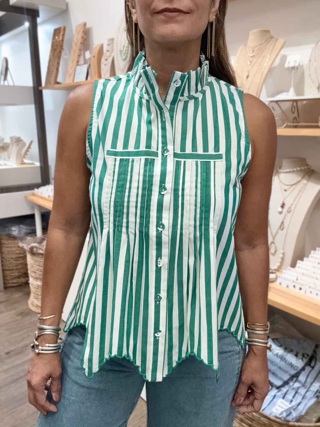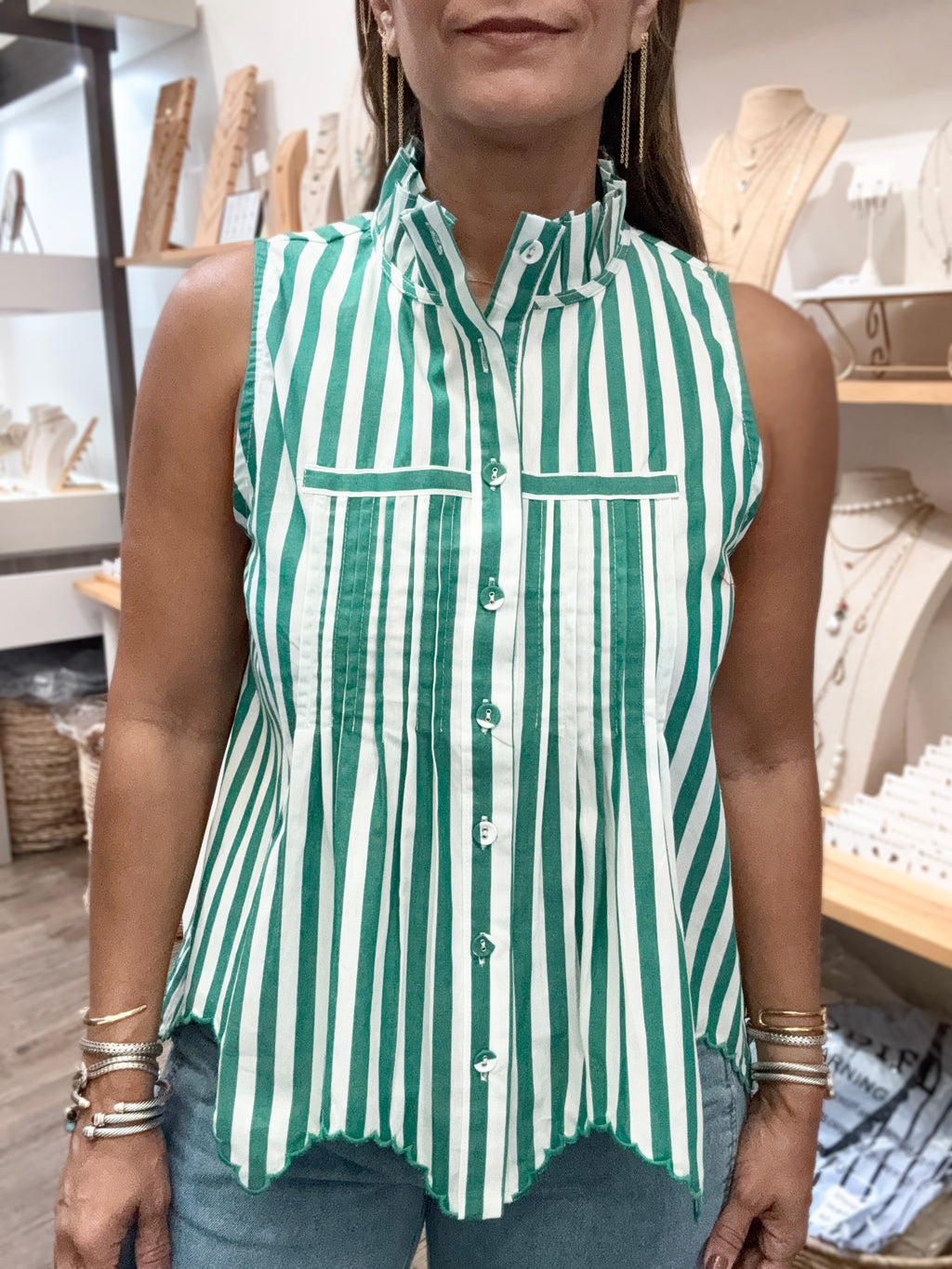 Green Stripes Button Down Top